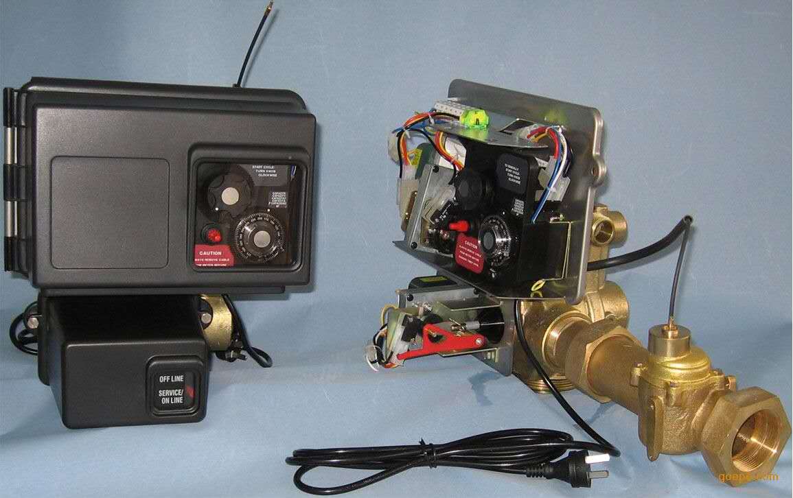 4、雙罐一用一備控制閥系列,主要由8500、9000、9500型控制閥組成,單閥同時控制兩臺樹脂罐(一用一備,交替再生),能連續(xù)供應(yīng)軟化水,由于采用軟水再生,再生效果好,適用于各種用水情況,對于用水量大的系統(tǒng)可多臺并聯(lián)運行。