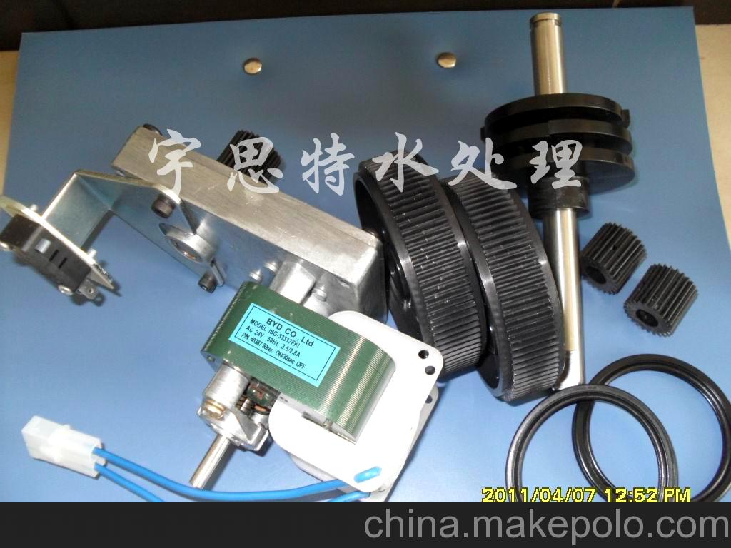 工作原理水力控制閥利用水流的動能驅(qū)動兩組渦輪分別帶動兩組齒輪推動水表盤和控制盤的旋轉(zhuǎn)。水表盤累計通過的流量,控制盤則將原水壓力信號通過一組孔道引入一組閥室,在轉(zhuǎn)動的同時按設(shè)定規(guī)律打開或關(guān)閉壓力孔道,從而實現(xiàn)集成在一體的一組閥門的自動切換。 軟水器由兩個樹脂罐(主罐和副罐)水力控制閥、鹽箱三部分組成,控制閥控制水路在主罐和副罐之間切換,確??傆幸粋€罐處于工作狀態(tài),而另一個罐處于再生或備用狀態(tài),再生鹽液靠閥內(nèi)裝設(shè)的文丘里噴射器負壓吸入,再生及清洗用水是另一個罐的軟化出水。對于不同的原水硬度配用不同號碼的水表盤以達到對應(yīng)的工作和再生周期。 應(yīng)用范圍廣泛應(yīng)用于各種工業(yè)與民用軟化水設(shè)備,如鍋爐供水、供熱空調(diào)系統(tǒng)補充水、紡織印染、造紙、洗衣、洗浴、食品加工、優(yōu)質(zhì)生活用水等各領(lǐng)域。處理流量從每小時0.3~數(shù)十噸。